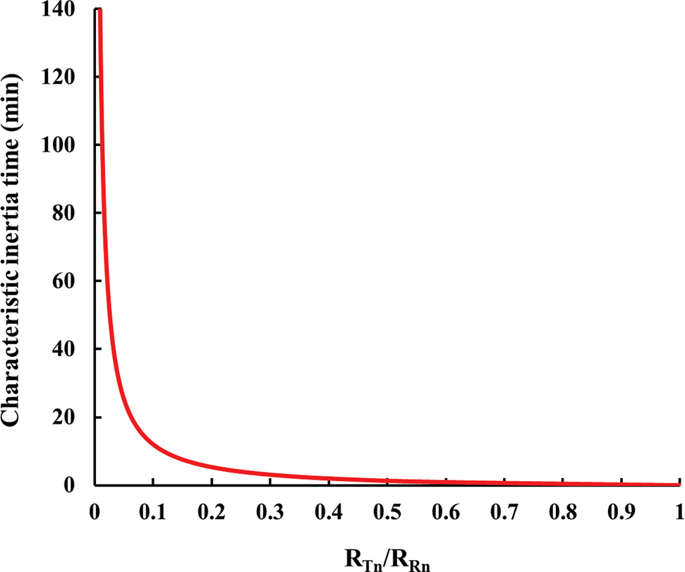 As seen from equation (1), using diffusion barriers (gap/pinholes as well as polymer foils) always introduces an additional inertia in the response to a sudden change of radon. The reaction of the detector to a sudden change of radon concentration may be characterized by τ = 1/λeff which is the ‘characteristic inertia time’ (usually in practice λd >> λRn, so τ ≈ τ d). This is, for example, the time needed for the concentrations in the protected volume to reach 63% (i.e., 1-e-1) of the equilibrium level, after a sudden change of the ambient concentration from zero to a constant nonzero value. We have used numerical modeling to calculate τ at different levels of reduction of the thoron interference, quantified by RTn/RRn [see equation (5)]. Figure 1 shows the introduced characteristic inertia time. If thoron interference of less than 5% is targeted, the additional inertia time introduced by the diffusion process may exceed 30 min, and if the target interference is <1%, the additional inertia time introduced may be >2 h.