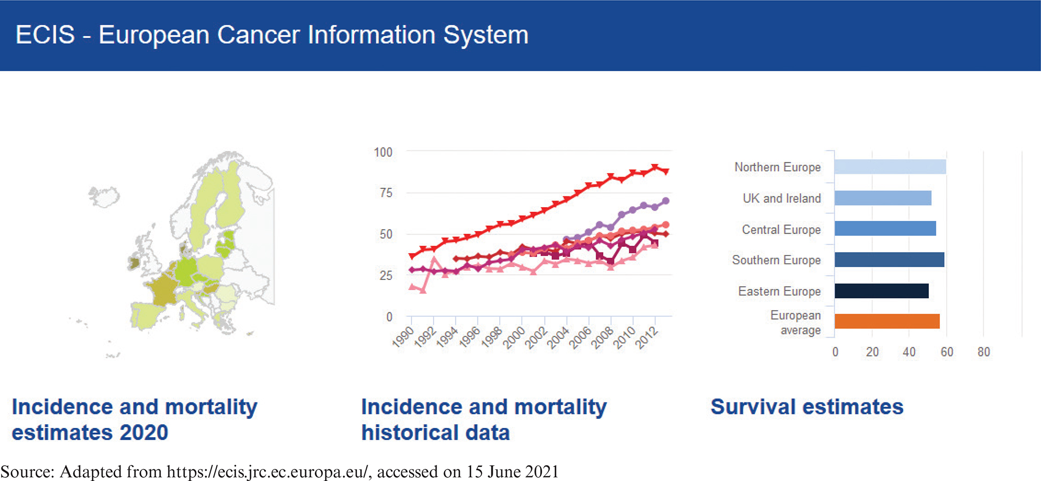 The effectiveness of actions to tackle cancer should, indeed, only be measured via accurate and comparable cancer indicators, such as incidence, mortality, prevalence and survival. The European Commission services [in particular the directorate generals of Health and Food Safety, and Joint Research Centre (JRC)] in close collaboration with the major European stakeholders in the cancer information field have established the European Cancer Information System (ECIS) for compiling such indicators based on accurate and harmonised cancer data at European level.